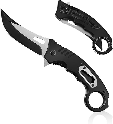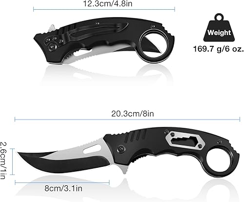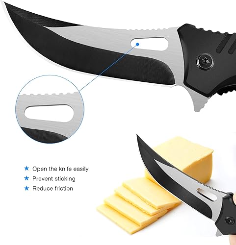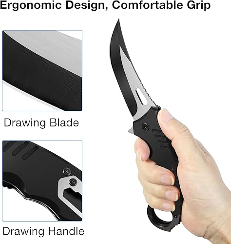 HONZIN 2 in 1 Klappmesser 3Cr13 Edelstahl Taschenmesser mit Schraubenschlüssel mit mehreren Spezifikationen Jagdmesser Ergonomisches tragbares Camping Messer (Schwarz)