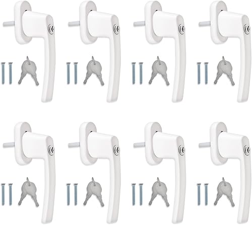 kwmobile 8X Aluminium Fenstergriff abschließbar - Kindersicherung Fenstersicherung mit Schloss in Stiftlänge 35mm - Fensterschloss in weiß RAL 9016