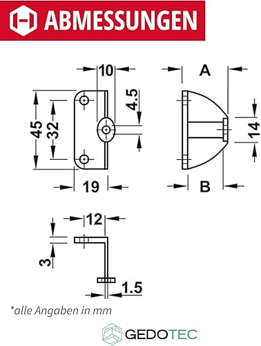 Gedotec Faltschiebetür-Befestigung | 2 Stück - Adapter für Falttüren-Griff | Türdicke 20 mm | Zinkdruckguss verchromt matt | Möbelgriff für Schiebetüren | Griffadapter zum Anschrauben