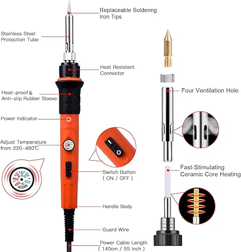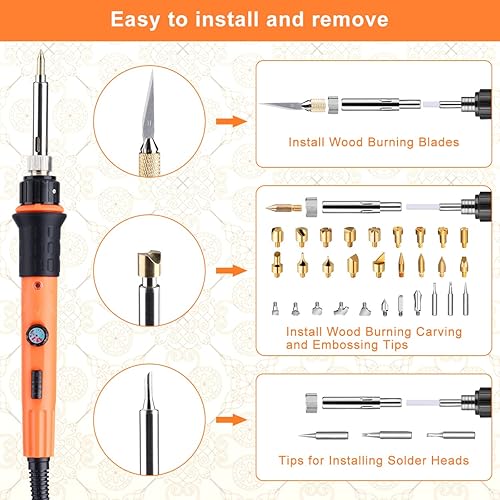 Brandmalerei Lötkolben Set, Brandmalkolben Set Temperatur Einstellbar 220~480 ℃ für Holz Leder Brennkolben DIY Kunst Geschenkset Farbstifte, Leder Gravieren Schweißen, Skulptur Holzbrandmalerei