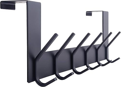 WEBI Türhaken zum Einhängen,Türgarderobe mit 6 Haken,Türaufhänger,Kleiderhaken Tür,Haken Tür,Türhakenleiste,4.5 cm,Schwarz