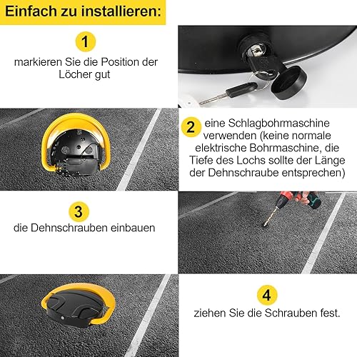Tubiaz 1*Parkplatzsperre mit 2 Fernbedienung Klappbare Parkschranke Mit 2 Schlüsseln geliefert Parkpfosten 180°Ferngesteuerter IReichweite der Fernbedienung 20m Parkplatzsperre P67 Private