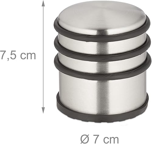 Relaxdays Türstopper Edelstahl, 2er Set, HxD: 7,5 x 7 cm, hoch & schwer, rutschfest, Türzuschlagbremse, silber/schwarz