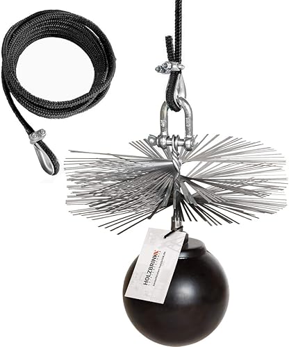 HOLZBRINK 225mm Kaminbesen Schornsteinbesen aus Federstahl + 10m PP-Seil + Zuggewicht inkl. Montagezubehör PROFISET Spezial