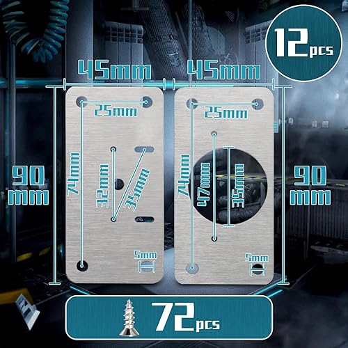 Ziamzra 12Stk Scharnier Reparaturset Edelstahl Scharnier Reparaturplatte für Schränke Reparaturplatte Scharnier 9X5cm Scharniere Reparaturplatte mit 72Stk Schrauben für Schrank Schublade Wohnmöbel