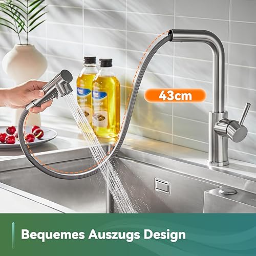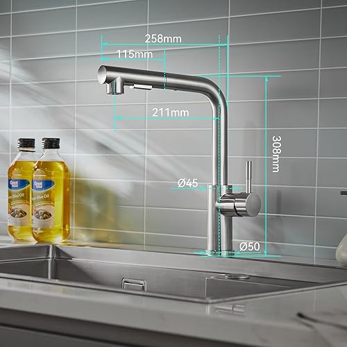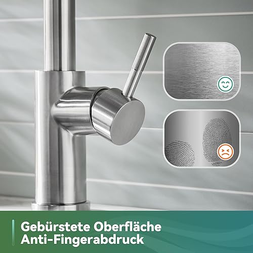 Mischbatterie Wasserhahn Bad Waschtischarmatur, Einhebel Waschbecken Armaturen Edelstahl, Armatur für Aufsatzwaschbecken Badezimmer Wasserhahn Heiß und Kalt Gebürsteter Silber Matt (BF0101BN)