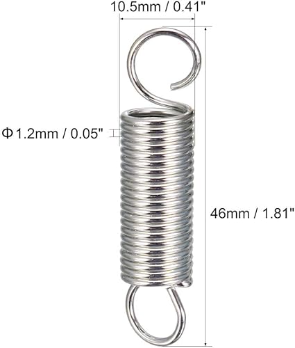 sourcing map Zugfeder 1,2mm Drahtdurchmesser 10,5mm Außendurchmesser 46mm freie Länge Federstahl Kleine Doppelhaken-Zugfeder 8Stk.