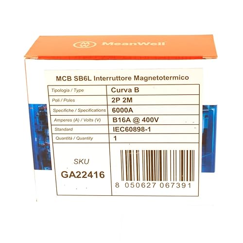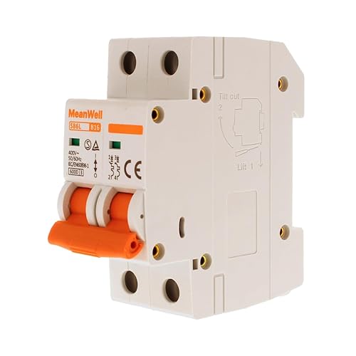 MeanWell Leitungsschutzschalter Kurve B, MCB 2P B16 16 A 6 kA 220 V, benötigt 2 DIN-Module