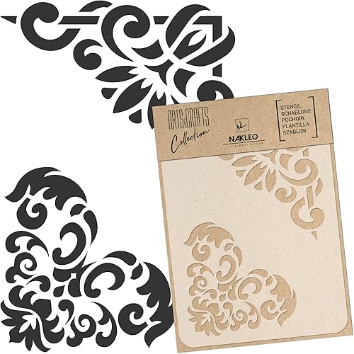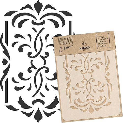 NAKLEO Malschablone für Handwerk A3 30x42cm, Klassiker Barockes Ornament Muster, Wiederverwendbare Kunststoff DIY & Scrapbooking Zeichenschablone, Decoupage Kunst Vorlage, Wand Stoff Möbel Holz