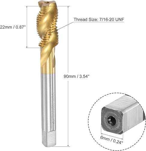sourcing map Gewindebohrer mit Spiralnut 7/16-20 UNF Schnellarbeitsstahl Titanbeschichteter Maschinengewindebohrer 3 Schneidiges Gewindeschneidwerkzeug H2 Toleranz