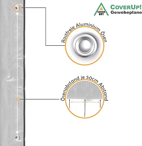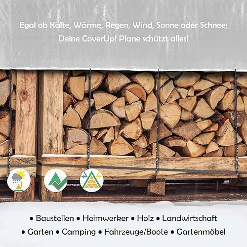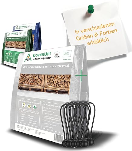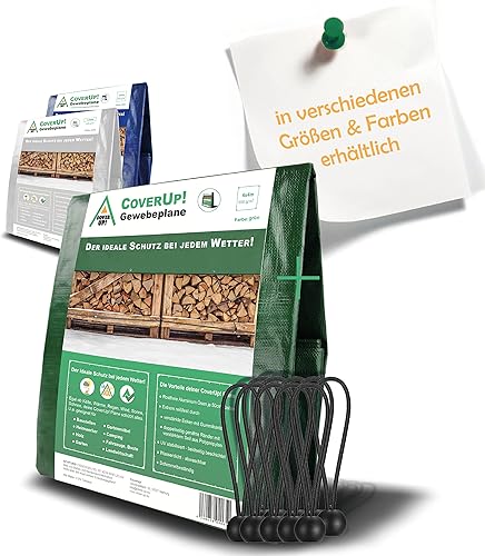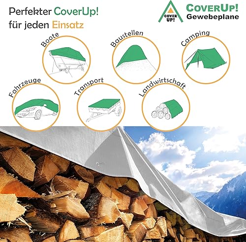 CoverUp! (4x4 m) Gewebeplane - Farbe: Grün, 200g/m² - Beständigkeit durch verstärkte Gummiecken & rostfreie Ösen - Abdeckplane bietet UV-Schutz - Plane inkl. 12 Planenspanner