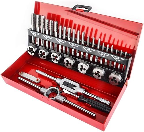 Gunpla 30 tlg. Gewindeschneid Satz Hochwertigem Legiertem Stahl Gewindebohrer und Schneideisen Set Speziell für Feingewinder | Metrisch | M3-M12 | in Metall-Box