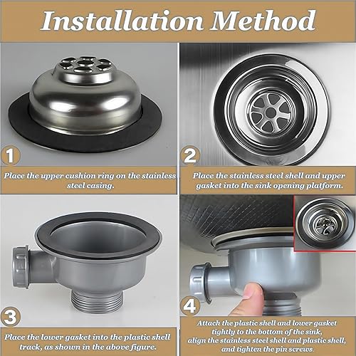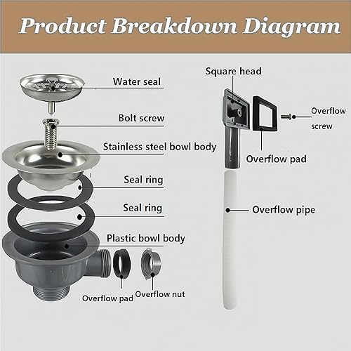SopimusZ 114 MM Küche Spüle Schüssel Typ Ablauf Abflusssieb mit Überlauf,Küchenspüle-Ablauf-Set, Edelstahl-Überlauf-Set, Küchenspüle,Überlaufrohre mit runder Ablaufabdeckung (Quadratisch)