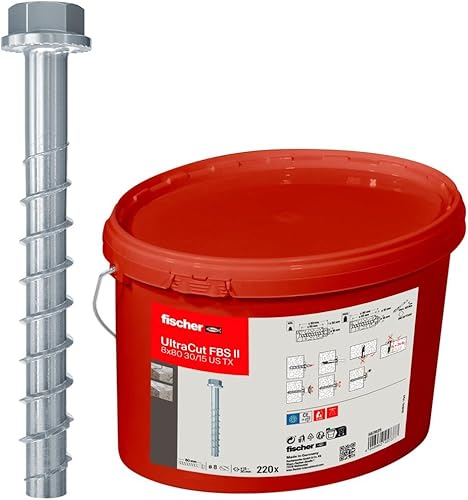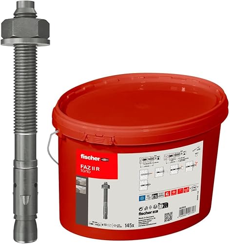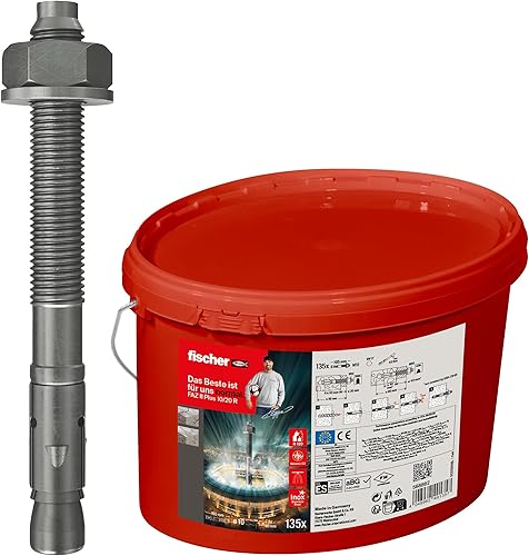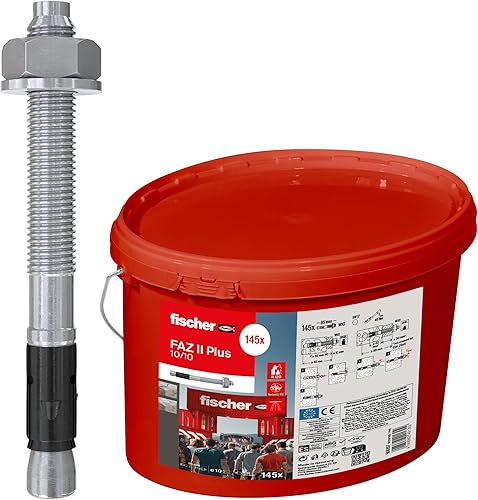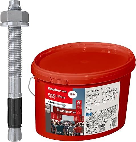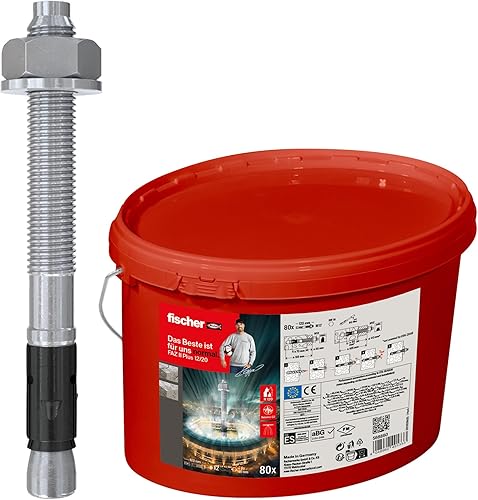 fischer Bolzenanker FAZ II Plus 12/20 gvz im Eimer, Schwerlastanker mit hoher Tragfähigkeit, 80 Ankerbolzen für Befestigungen schwerer Lasten und Stahlkonstruktionen, Seismik- & ETA-Zulassung