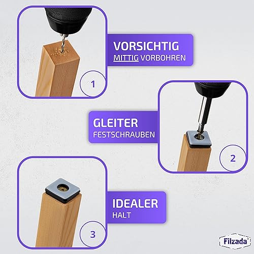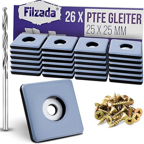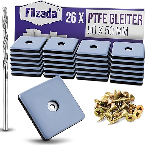 Filzada® 18x Teflongleiter zum Schrauben - 50 x 50 mm (eckig) - Möbelgleiter/Teppichgleiter PTFE (Teflon) inkl. Schrauben