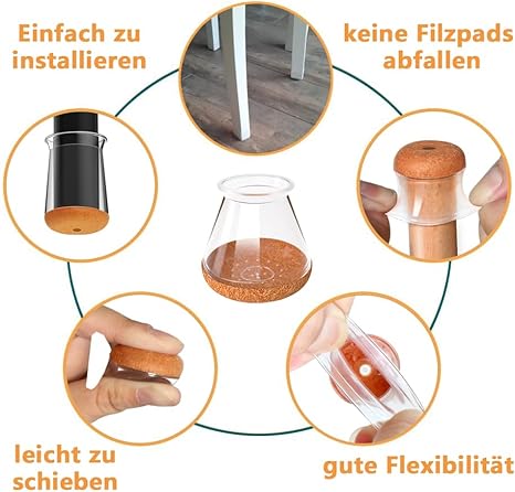 Stuhlbeinkappen Eckig(Fit Seitenlänge: 26-40mm),20 Stück Transparent Silikon Stuhl Beinprotektoren, Klare Silikon Stuhlbeinschoner, Zum Schutz von Böden Heimfilzpads