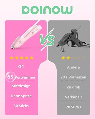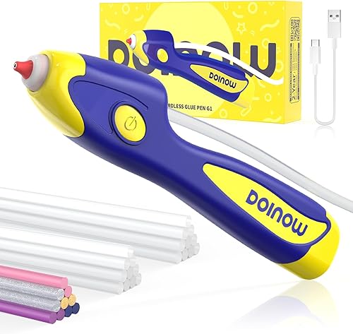 Heißklebepistole Akku Kabellos, 6s schnelles Vorheizen, Automatisches Auskleben ohne Tropfen, Heißklebestift mit 30Pcs 185mm farbige Klebesticks, Per USB-C aufladbare Mini heissklebestift zum Basteln