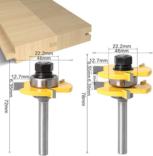 45 Grad Lock Mitre Router Bit, APLUS Holzfräser, Nutfräser + 8 mm Schaft Zungenschaft und Nutfräse Set 3 Zähne in T-Form Cutter aus Holz für Holzarbeiten
