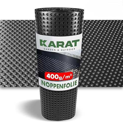 KARAT 400g/m² Premium Noppenfolie, Hochbeetfolie - Noppenbahn für Mauerschutz, Grundmauerschutz - Dichtungsbahn mit Drainage - flexibel zuschneidbar (1, Schwarz, 1 x 20 m)