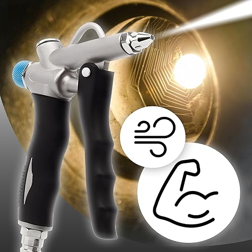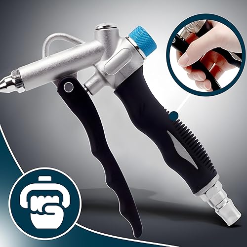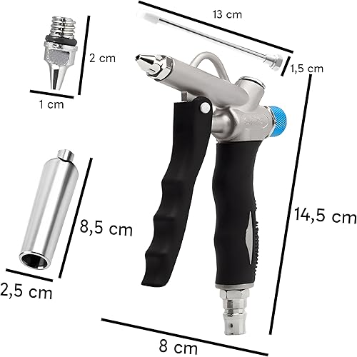 Retoo Ausblaspistole mit Luftstromregelung, 110 mm, Druckluftpistole mit 3 Düsen: Venturi, Punktdüse, Lange Düse, robuster Metallkörper, für Werkstatt, Industrie, präzises Entfernen von Schmutz