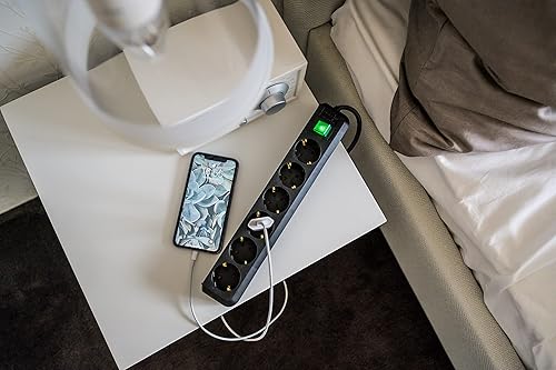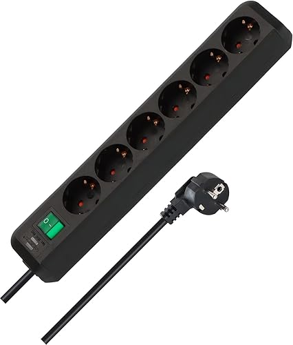 Brennenstuhl Eco-Line, Steckdosenleiste 6-Fach (Steckerleiste mit erhöhtem Berührungsschutz, Schalter und 3m Kabel) schwarz
