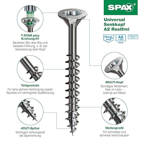 SPAX Universalschraube, 4 x 35 mm, 90 Stück, Teilgewinde, Senkkopf, T-STAR plus T20, 4CUT, Edelstahl Rostfrei A2-8000000276460