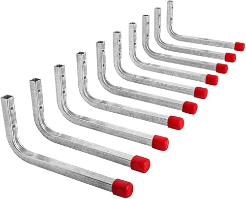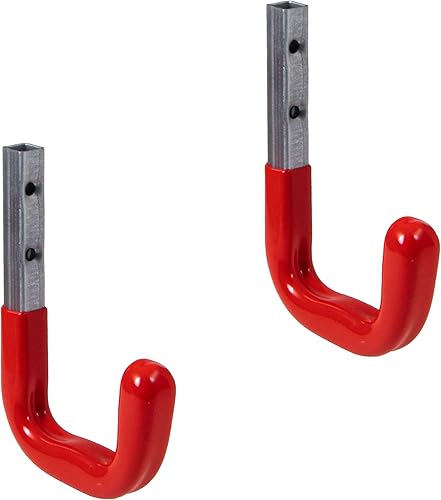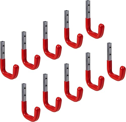 Gedotec Wandhaken Garage mit Gummierung rot Metall-Haken Werkstatt für Wand-Montage | Schwerlast-Gerätehalter 80 x 120 mm | Tragkraft 45 kg | Haken für Garten-Geräte | 12 Stück - Montagehaken-Set