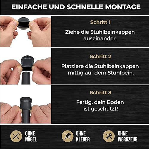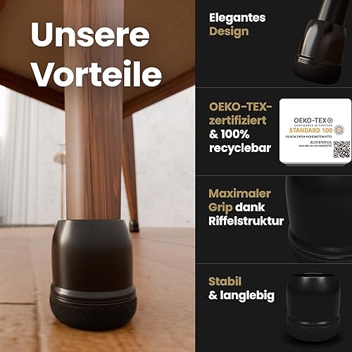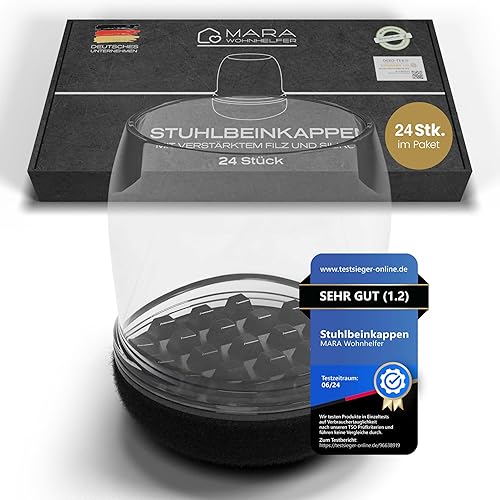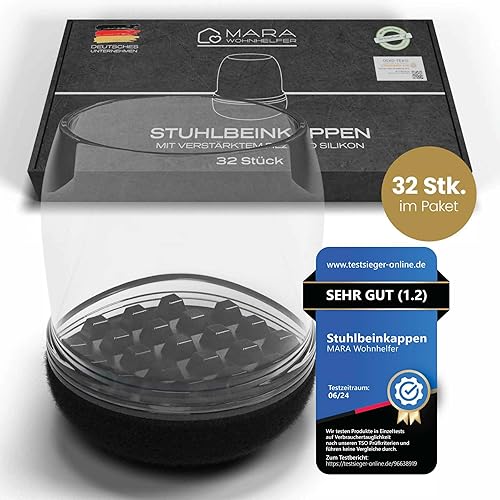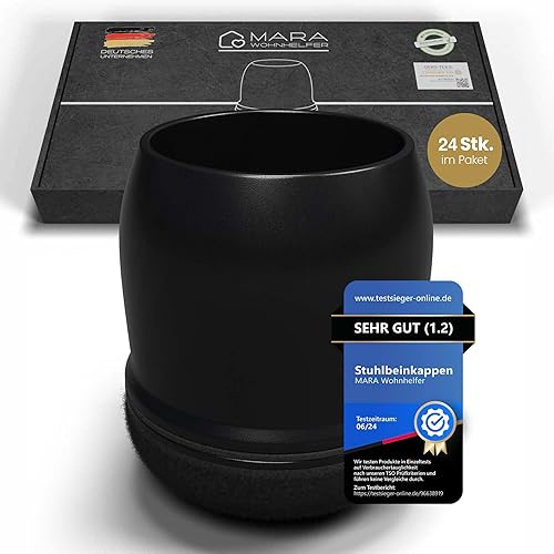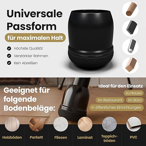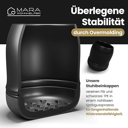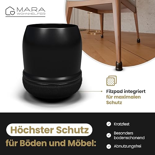 MARA WOHNHELFER® 32x Stuhlbeinkappen Rund mit 360° verstärktem Filz, Stuhlbeinschoner, Schutzkappen, Filzgleiter für Stühle (Schwarz, Mittel | Größe M | 19-25mm)