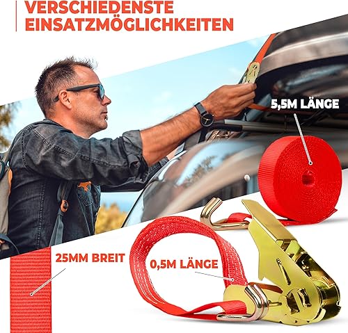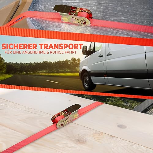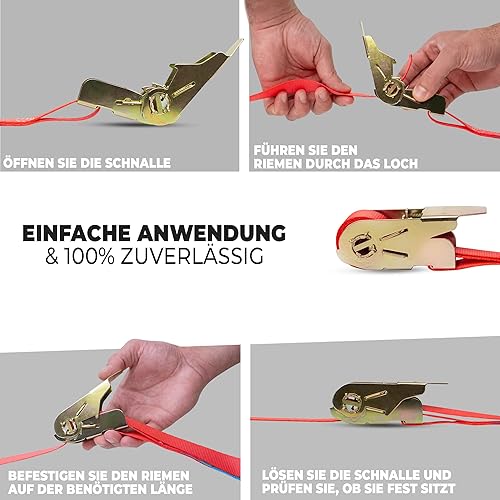 Spanngurte mit Ratsche | 4, 8, 10 oder 20 Stück | 800 kg | 6m | 2 teilig | TÜV/GS geprüft | zweiteilig mit Haken | Ratschengurt | Zurrgurte | 25mm | 0,8 t (8 Stück)