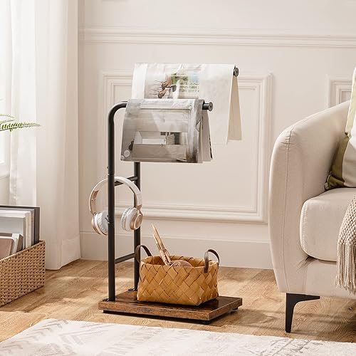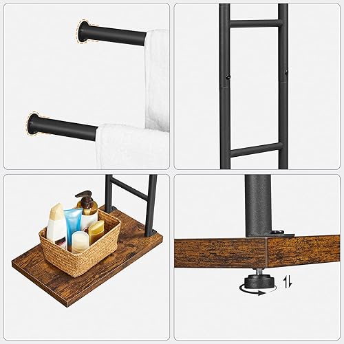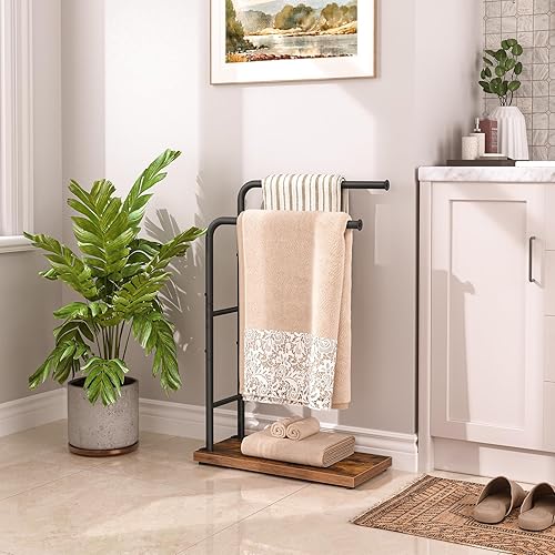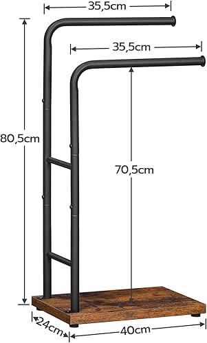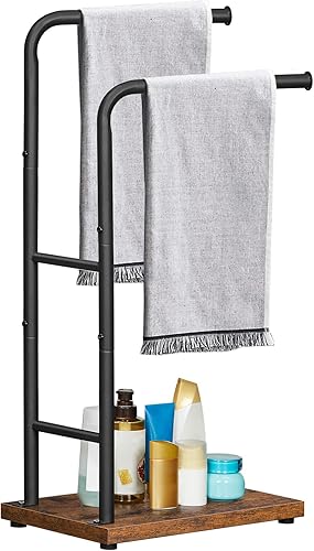 HOOBRO Handtuchhalter Stehend, Badetuchhalter mit 2 Stangen, Handtuchständer freistehend, 40 x 24 x 80,5 cm, für Badetücher, Kleidung oder Zeitungen, Dunkelbraun-Schwarz EBF24LB01G1