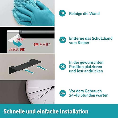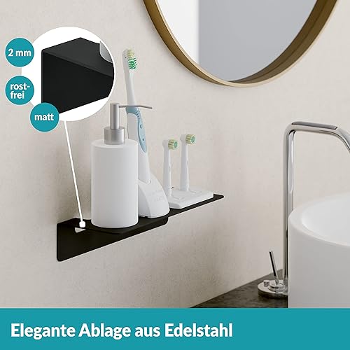 WEISSENSTEIN Badablage ohne Bohren aus Edelstahl - Selbstklebende Ablage fürs Bad - 24 x 9,5 x 5 cm