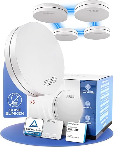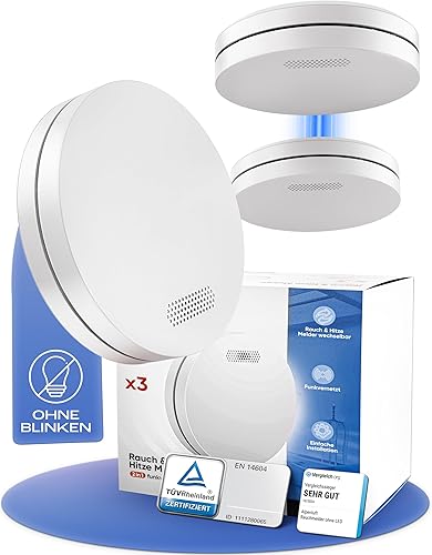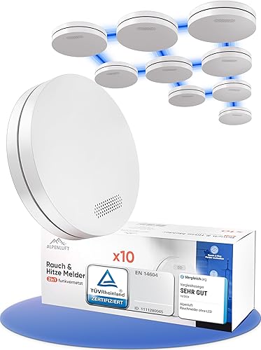ALPENLUFT Rauchmelder Funk Vernetzt 10 Jahre Batterie, Rauchwarnmelder & Hitzemelder 2in1, Feuermelder, Brandmelder, Funkrauchmelder Vernetzbar | Ohne Bohren, Ohne LED Blinken