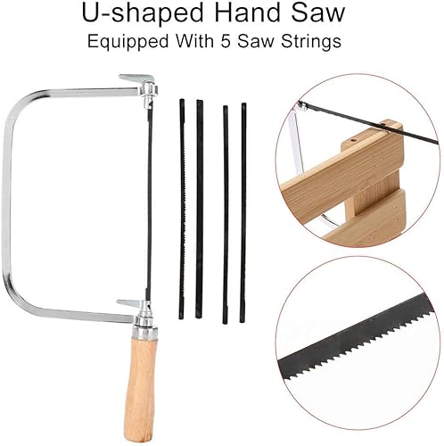 Laubsäge Inkl. 5 Sägeblätter Für Metall Und Holz, Laubsäge Set Laubsägeblätter, Verchromter Stahlrahmen, Ergonomischer Handgriff Multifunktionssäge Hand-Bügelsäge
