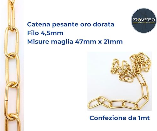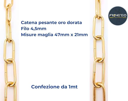 1 m schwere, goldene Kette für Kronleuchter, Draht 4,5 mm – Maschenweite 47 mm x 21 mm