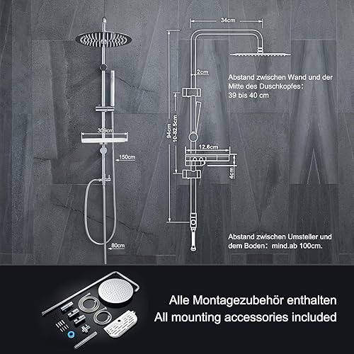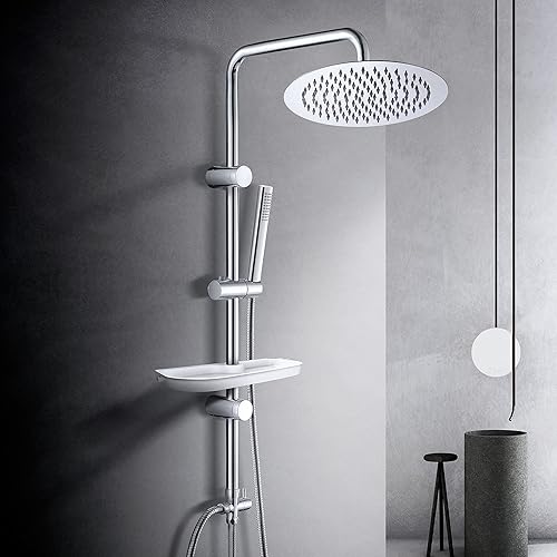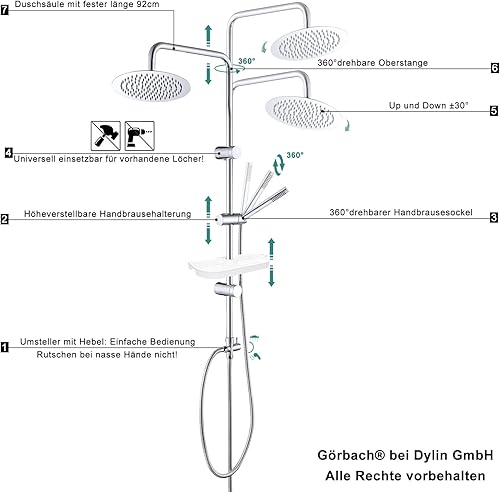 Görbach Duschset Duschstange mit Duschkopfhalterung Edelstahl Brausestange 70cm, Dusch Wandstange mit Variable Wandbefestigungen für Variabel zur Anpassung an Bestehende Bohrlöcher-Chrom