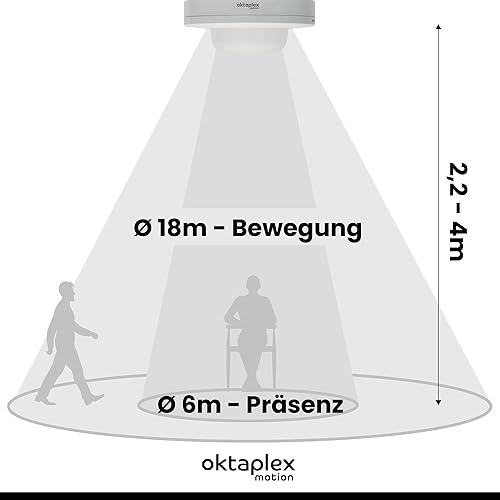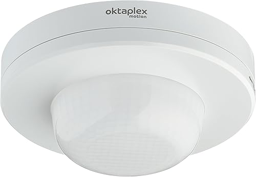 Oktaplex Pia Präsenzmelder Aussen & Innenbereich 360° Infrarot Bewegungsmelder IP65 230V Aufputz Bewegungssensor weiß