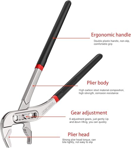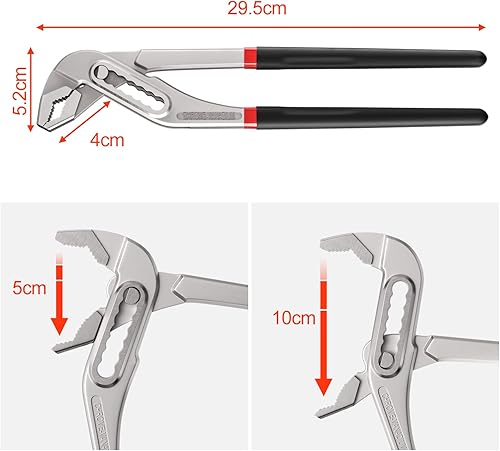 Mesybveo Wasserpumpenzange, 295mm Rohrzange Klein, Wasserrohrzange mit Rutschhemmend Griffe, Verstellbares Pumpenzange, Langlebige, für Klempnerarbeiten, Autoreparaturen, Heizungsreparaturen(Schwarz)