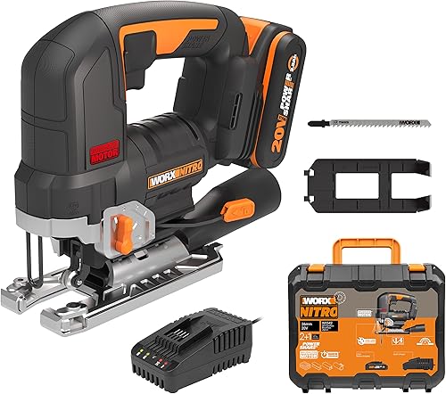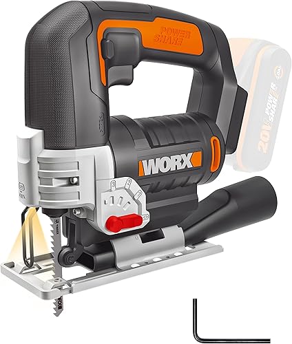 WORX WX543.9 Akku-Pendelhub-Stichsäge – Profi Stichsäge mit Absaug-Adapter – Ideal auch für Gehrungsschnitte – PowerShare kompatibel – ohne Akku & Ladegerät