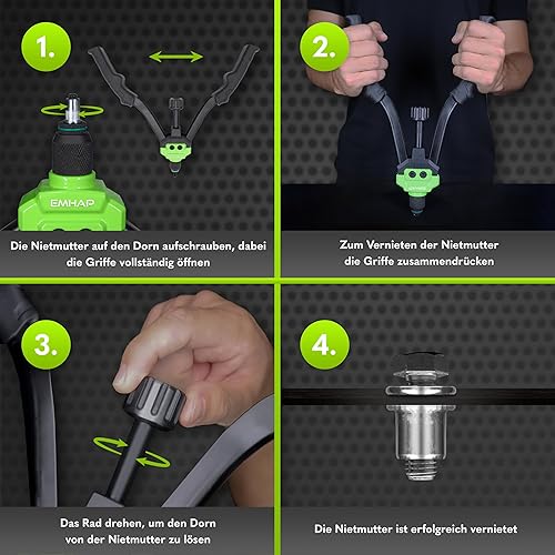EMHAP© Nietmutternzange Set PREMIUM Blindnietmutternzange inkl. Organizer box 130 Nietmuttern Set M3, M4, M5, M6, M8, M10, M12 Einpressmuttern (Nietmutternzange Set)