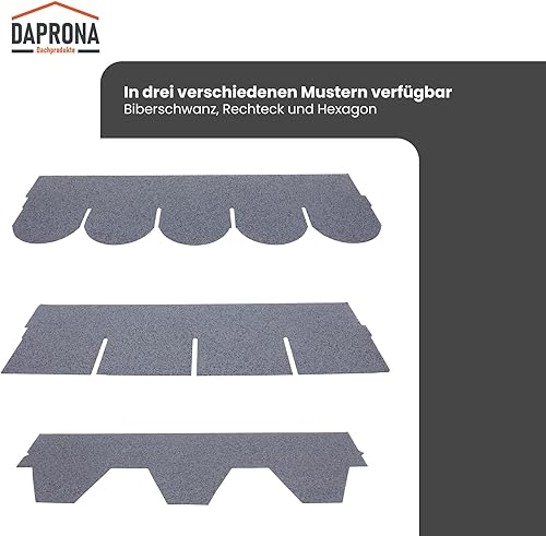 DAPRONA Dachschindeln selbstklebend, Biberschwanz Rund Grau 1m x 32cm Bitumenschindeln für Gartenhaus, Carport, Flächendeckung 2,61m²