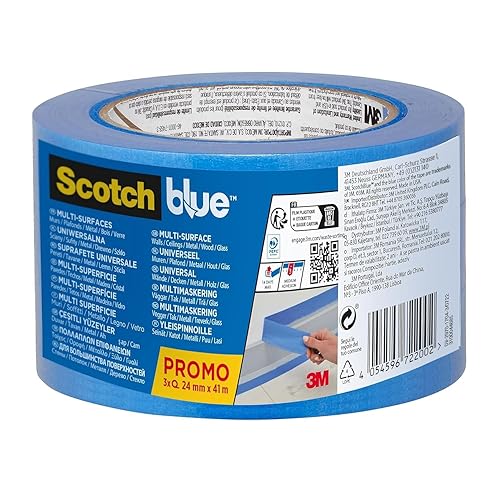 ScotchBlue Premium Malerabdeckband Multi-Surface, 24 mm x 41 m - Scotch Klebeband für Malerarbeiten und Dekoration zum Streichen, Lackieren, Renovieren - Abklebeband/Kreppband, 3 Stück - 70% PEFC