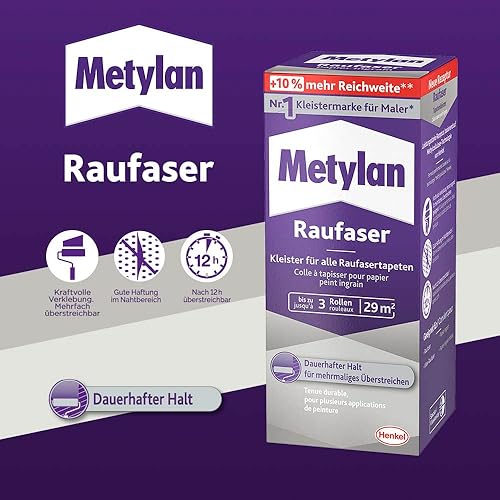 Metylan Raufaser, starker Tapetenkleister für Raufasertapete mit hoher Anfangsklebkraft, langlebiger & korrigierbarer Kleister mit Methylcellulose, 2x180g