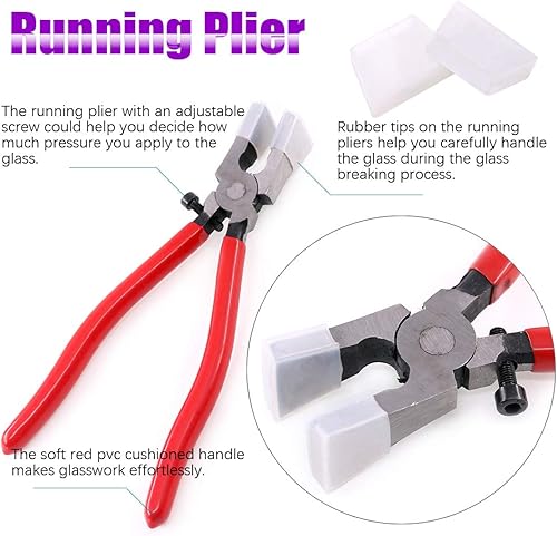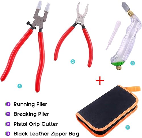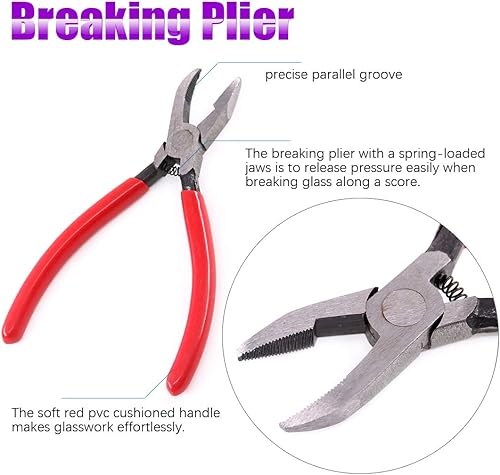 Swpeet 9Pcs Glasschneider Werkzeugsatz, Brecher Grozer Zange und Curve Jaw Glas läuft Zange Kit mit Gummispitzen, Bleistift Öl Feed Hartmetallspitze Glasschneider, 2Pcs Klingen mit Öltropfer und