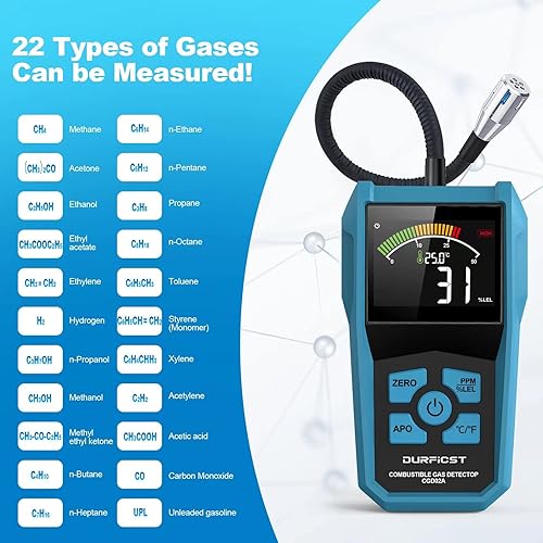 Gaslecksuchgerät, DURFICST Tragbarer Gasmelder Erdgas, Alarmierbarer Gas Detector zur Messung von Erdgas, Flüssiggas, Kohlegas und Anderen Brennbaren Gasen