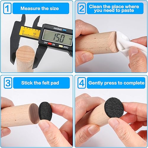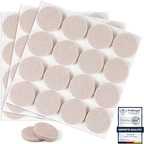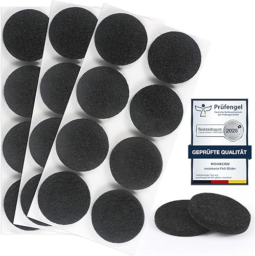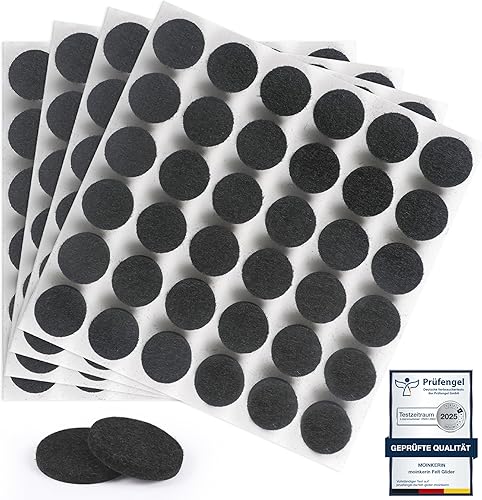 moinkerin 144 Stücke Filzgleiter Selbstklebend 15mm filzgleiter für stühle 5mm Dicke Möbel Filzgleiter für Möbelfüße Stuhlbeine, Hartholzböden(Schwarz,15mm)