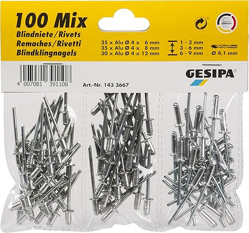 GESIPA | 50x Alu - Blindnieten Ø 5,0 x 12,0mm | Für Materialstärke: 6,0-8,0mm | Nieten in Industrie-Qualität | Kaufe Hohlnieten von den Profis