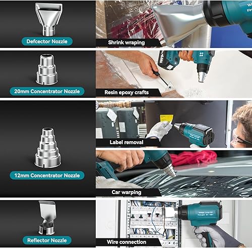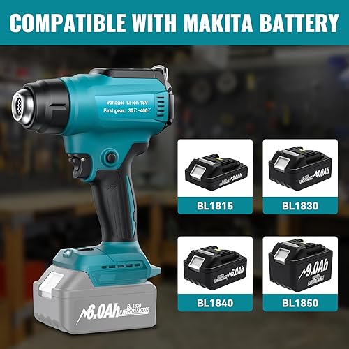 Kabellose Heißluftpistole für Makita 18V Akku Heißluftpistole zum Schweißen, Rohrbiegen, Farbentfernung, Heißluftpistole mit 4 Düsen. (ohne Akku)