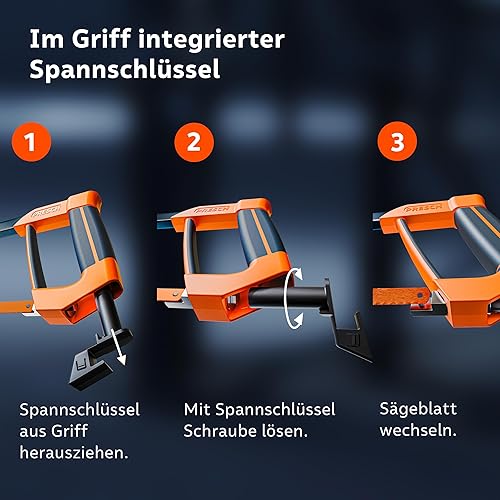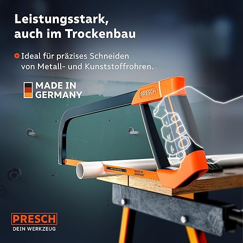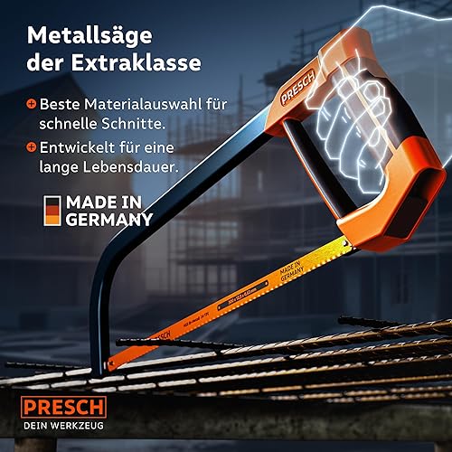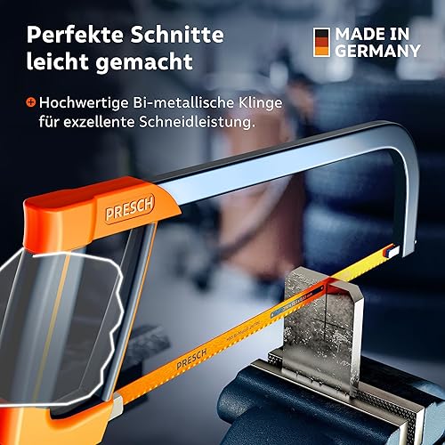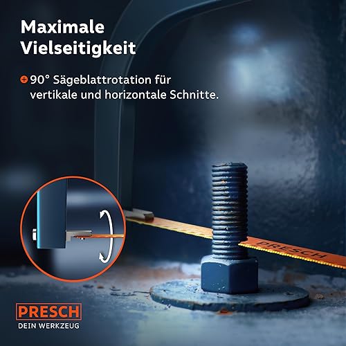 Presch Metallsäge 300mm - Inkl. BI-Metall Sägeblatt für präzise Schneidleistung - 90° Sägeblatt-Rotation für horizontale & vertikale Schnitte - Ergonomischer Griff inklusive Spannschlüssel