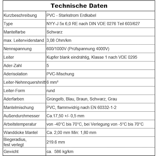 MAS Premium Erdkabel Stromkabel 5-125m NYY-J 5x1,5, 2,5, 4, 6, 10 oder 16 Elektrokabel Ring zur Verlegung im Freien, Erdreich (NYY-J 5x2,5 mm², 20m)
