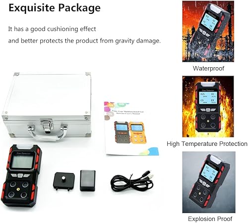 GiiHoo Tragbarer 4-Gas-Monitor, persönlicher Schalllicht, Vibrations-Multi-Gas-Detektor-Messgerät, wiederaufladbar, LCD-Bildschirm-Hintergrundbeleuchtung, gebrauchsfertig (schwarz)